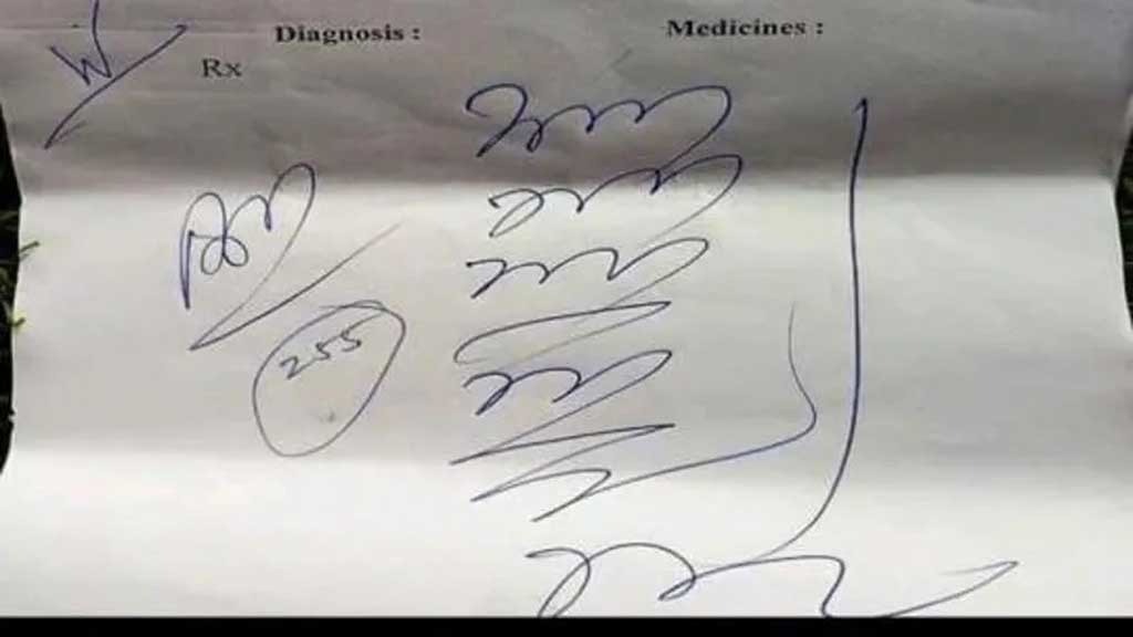 চিকিৎসকদের হাতের লেখা এতই হিজিবজি যে তার মর্মোদ্ধার করার ক্ষমতা কেবল দোকানের ফার্মাসিস্টদেরই থাকে, বিশ্বজুড়ে থাকা এ কৌতুক ভারতের ক্ষেত্রেও প্রযোজ্য।