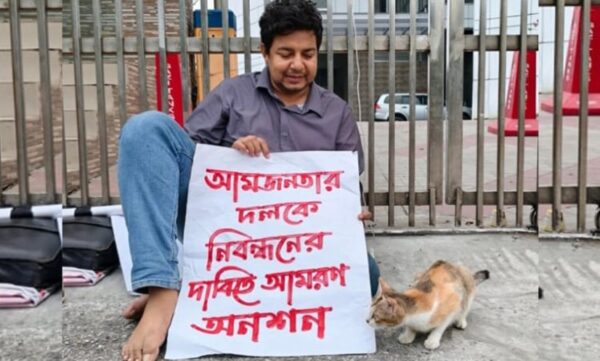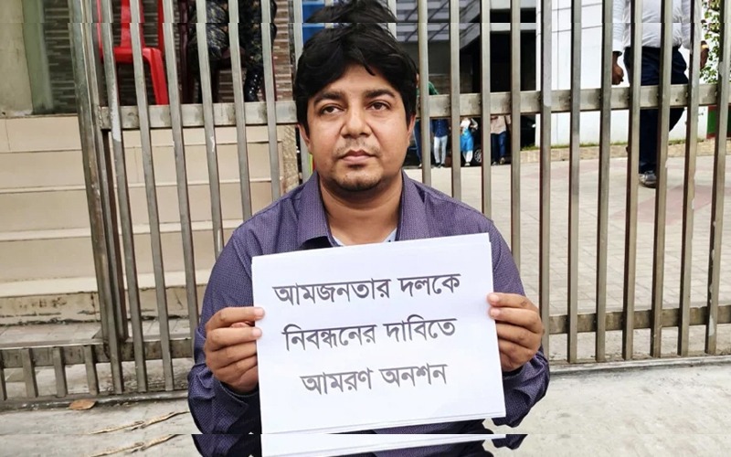 নিবন্ধনের দাবিতে আমরণ অনশনে আম জনতার তারেক রহমান