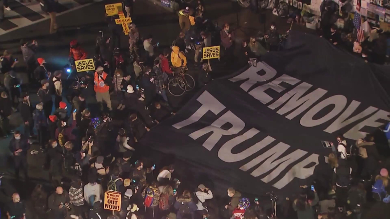ওয়াশিংটন পোস্ট জানাচ্ছে, মাঝেমধ্যেই চিৎকার করে কেউ বলছেন, ‘উই ওয়ান্ট হিম গন’। তাদের হাতের ব্যানারে লেখা ‘রিমুভ ট্রাম্প’।
